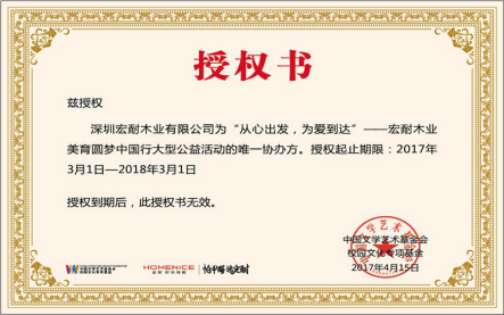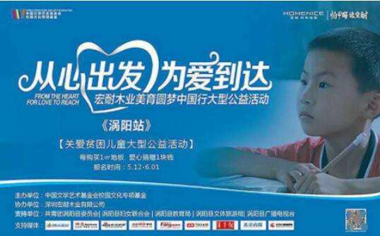 由中國文學(xué)藝術(shù)基金會(huì)發(fā)起,中國文學(xué)藝術(shù)基金會(huì)校園文化專項(xiàng)基金主辦,宏耐地板獨(dú)家贊助支持,并以全國選拔形式在行業(yè)內(nèi)引起轟動(dòng)效應(yīng)的宏耐美育圓夢大型公益活動(dòng),5月起已在全國范圍內(nèi)火熱展開。
