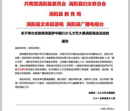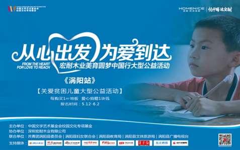 自2017年5月起,由中國文學藝術(shù)基金會發(fā)起、校園文化專項基金主辦、深圳宏耐木業(yè)有限公司獨家協(xié)辦的“美育圓夢大型關(guān)愛貧困青少年兒童公益活動”于全國盛大開幕。耐地板美育圓夢“愛心天使”選拔賽第一站渦陽站報名已開啟。