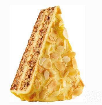 外面一層黃色的,有股濃郁的奶味,蛋糕很濕潤,當中有很多很碎的杏仁,又不會太甜。
