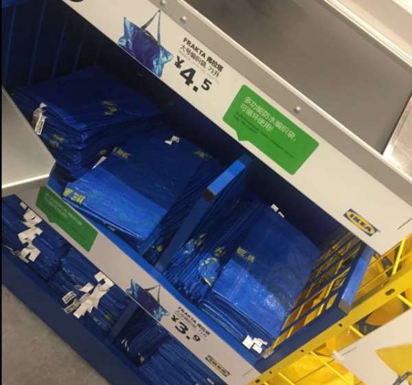 宜家隨處都可見的黃色編織袋,沒錯,它就是你的購物車。逛著逛著有什么心儀的商品,就可以裝在這里了。這個個黃色購物袋也是隨處可見的,所以不用擔心找不到它。