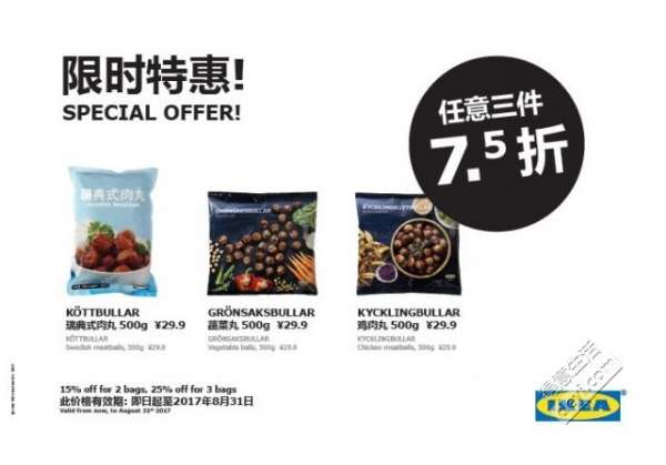 4.即日起-8.31,全場丸子家族(瑞典式肉丸,蔬菜丸,雞肉丸)任意三件75折;
