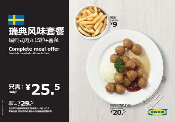2.瑞典風味套餐——瑞典式肉丸15粒+薯條 ¥25.5;
