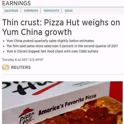 “必勝客的單店銷售毫無增長,令人失望,而市場之前普遍預期有1.5%的增長率。