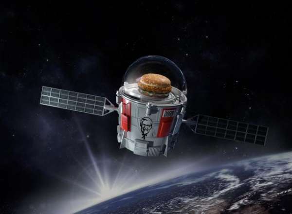 朋友間開玩笑常用這樣一句話,你厲害你上天啊!這不在中國快餐界賣的風(fēng)生水起的KFC老爺爺就真的帶著他的漢堡上天了。從外觀上來看這個衛(wèi)星長得就有點像一個放大版的全家桶,它的名字叫stratollite。