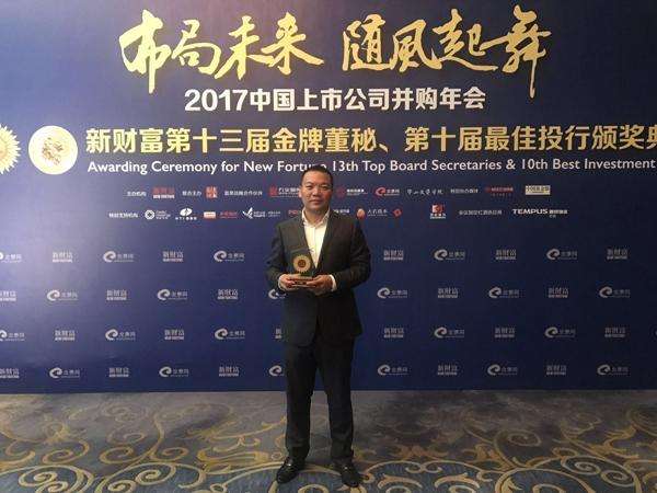 6月29日,由新財(cái)富舉辦的“布局未來,隨風(fēng)起舞”2017年中國上市公司并購年會暨新財(cái)富第十三屆金牌董秘、第十屆最佳投行頒獎典禮在深圳舉行。在今年的資本圈年中盛宴中,天音控股董秘孫海龍從3000多家上市公司董秘的角逐中脫穎而出,榮獲“新財(cái)富金牌董秘”獎項(xiàng)。