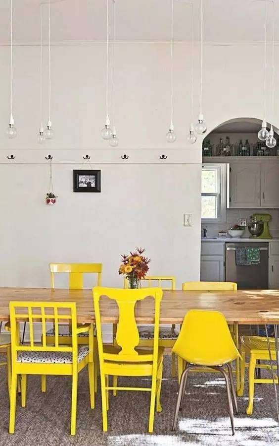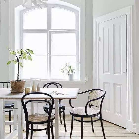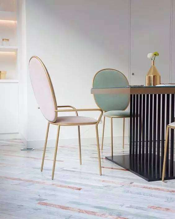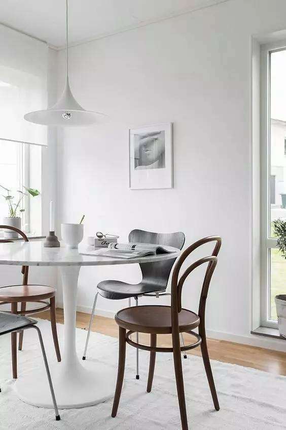 由此可見,你家就餐區(qū)域的「搭配」,遵照這個原則:「以靠背椅為主+其他類型的椅子」。