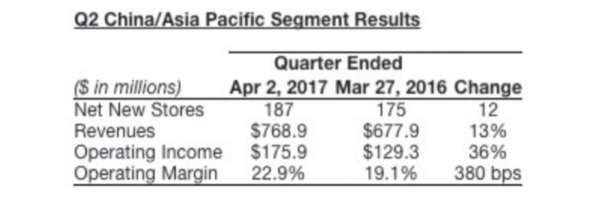 而星巴克已經(jīng)耕耘了18年的中國市場,正在成為它最重要的增長引擎。星巴克2017Q2財報顯示,中國/亞太區(qū)的利潤增速達(dá)到36%,遠(yuǎn)超美洲地區(qū)和EMEA(歐洲、中東、非洲)市場。舒爾茨也曾表示:“未來,星巴克中國將可能超過美國,成為星巴克全球最大的市場。”
