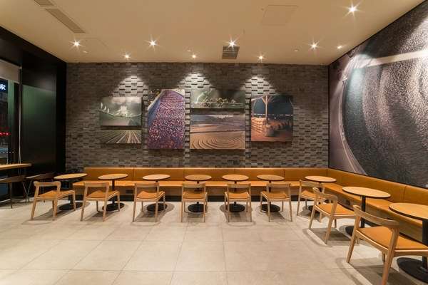 星巴克眉山首店在顧客休息區特意布置了一整面的青磚墻。青磚青瓦——是眉山千年來沉淀出的歷史厚重,也是川西平原獨有的建筑特色。墻面上的畫面記錄了從咖啡種植,到咖啡烘焙的全過程,幼苗經歷風吹日曬長成豆子成熟可摘采的咖啡樹,紅潤飽滿的咖啡豆要經過篩選晾曬烘焙才能散發出如今的馥郁香氣,平均要經過34雙手、穿越7458公里來到星巴克門店,每一位咖啡師嚴格遵循18--23秒的最佳萃取時間,讓星巴克將心注入的理念繼承和發揚。