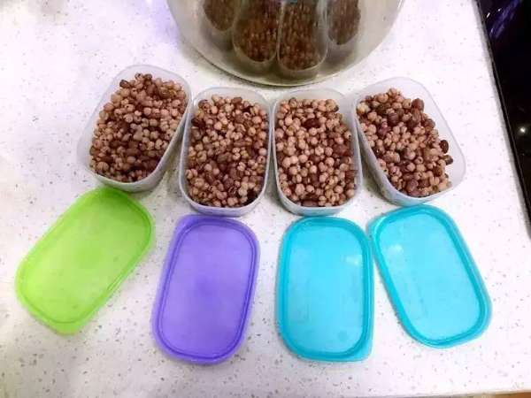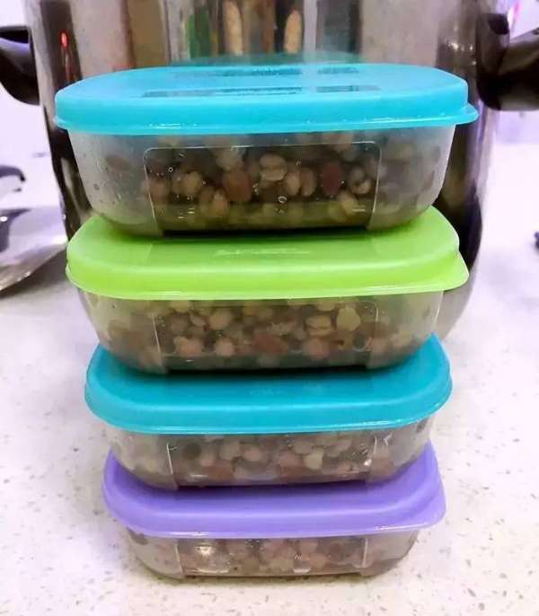 2、將煮好的紅豆薏米晾涼后用特百惠迷你冷凍盒分裝好;