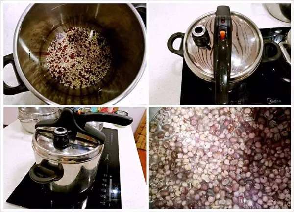 1、紅豆和薏米清洗干凈,放入壓力鍋中,加入適量納美水,煮上壓后定時12分鐘,將紅豆和薏米煮熟,膳食調養需要天天堅持,所以可以一次煮好一周或更長時間的量;