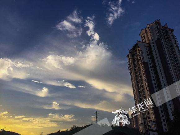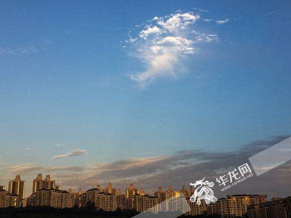 19時40分,隨著夕陽西下,重慶原本蔚藍的天空換上了一套鎏金的衣裳,白色的云朵則被金色的陽光照得透亮透亮。