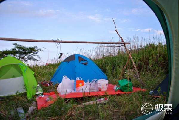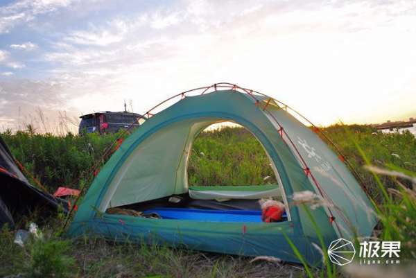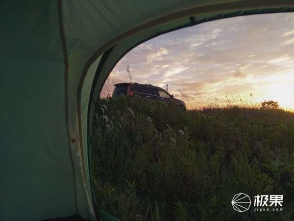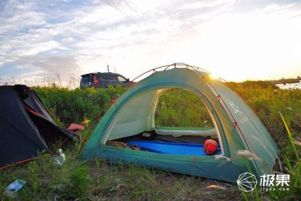 早晨起來后,帳篷頂部并沒有出現(xiàn)凝露現(xiàn)象,我想這也是得益于出色的透氣系統(tǒng)設(shè)計(jì),但是靠近雜草位置不可避免的出現(xiàn)凝露水滴,這也能說明帳底間隙成為內(nèi)外帳熱量交換通道,外帳面料涂硅處理,水滴不會(huì)浸濕外帳,收納時(shí)候避免增加帳篷重量。