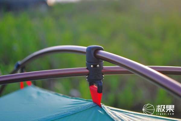 帳底四角扣眼與帳桿四眼相扣,并且利用凱樂石專利扣件,環(huán)環(huán)相扣支撐起了整個(gè)帳篷,這款帳篷可以說最大亮點(diǎn)就是外掛帳桿,凱樂石巧妙的把內(nèi)帳傳統(tǒng)掛式移植外帳上,讓搭建更加便捷,并且解決了雨天搭建打濕賬內(nèi)及裝備弊端,讓雨季露營更加干爽安全。