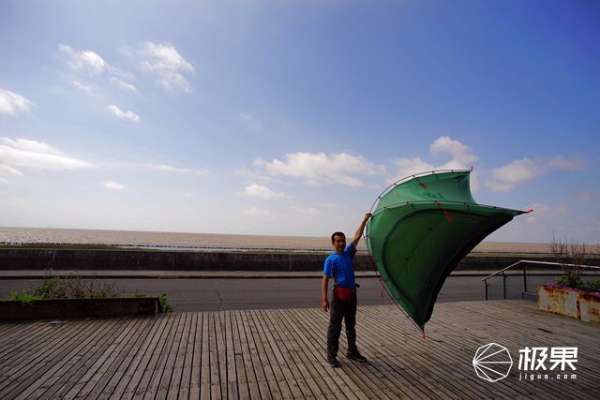 為了更加形象的表達(dá)風(fēng)力情況,單手握住帳頂扣件,風(fēng)力可以輕松吹起帳篷,迎風(fēng)飄展圖片側(cè)面也能表達(dá)出,這款帳篷出色的設(shè)計(jì)及裁剪功力,風(fēng)力影響下,帳桿沒有任何脫扣變形情況產(chǎn)生。