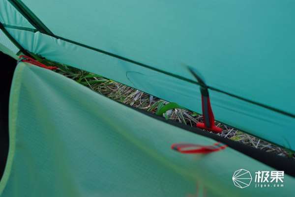 雙門設(shè)計(jì)能提供視野更加寬廣的范圍,營地選擇上視角更加通透,帳門設(shè)計(jì)也略顯死板,雙側(cè)拉鎖屬于標(biāo)配模式,外帳下側(cè)收納帳門設(shè)計(jì)我認(rèn)為是一敗筆,或者說兩側(cè)都采用底部收納方式,雨天開啟帳門上部沒有任何遮擋,出入間隙雨水直接落到帳篷內(nèi)部。