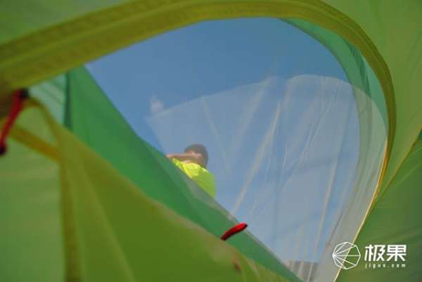 體驗(yàn)抗風(fēng)能力在來看下,這款帳篷內(nèi)部通風(fēng)透氣性能如何,帳篷在有限空間內(nèi),整晚睡眠如果帳內(nèi)沒有一個(gè)良好通風(fēng)環(huán)境,空氣不流通,身體健康是一個(gè)隱患,同時(shí)如果內(nèi)外溫差急劇變化,就會(huì)形成凝露現(xiàn)象,水滴打濕睡袋給睡眠帶來隱患,凱樂石天穹設(shè)計(jì)了對(duì)流透氣窗口,并且窗口內(nèi)部帳布預(yù)留足夠的長度,避免窗口關(guān)閉后雨水浸入。