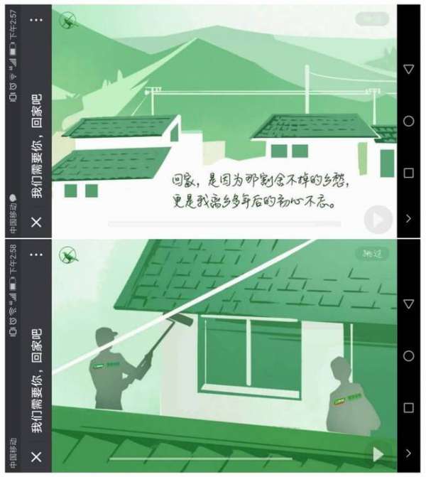 6月22日,三棵樹歸鄉(xiāng)互動H5感動上線,替已經(jīng)遠離很久的故鄉(xiāng)發(fā)出這聲呼喚“我們需要你”,正是我們身邊大多數(shù)人的寫照。回到淳樸的故鄉(xiāng),完成父輩未完成的夢想,這一方養(yǎng)育我們長大的山水不該隨著時間的流逝而變得陳舊黯淡。