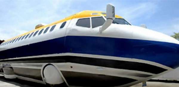 這是公共汽車么?不是,這是飛機(jī)么?也不是,這是一個(gè)噴氣豪華轎車。一名航空愛好者將梅賽德斯巴士改裝成帶有波音727外殼的豪華轎車。這架53英尺長的車輛擁有50人的飛行功能,包括電視和全套酒吧。現(xiàn)在可以10萬元/月的價(jià)格租賃,或者100萬購買。
