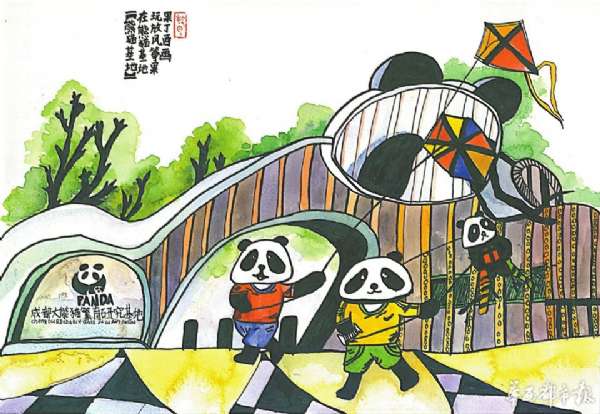 在小學(xué)生童趣繪畫中,我們看到,國寶熊貓帶著小伙伴在成都文化景點之間游玩,作為成都人,這些城市文化已經(jīng)根植在她的血脈中。