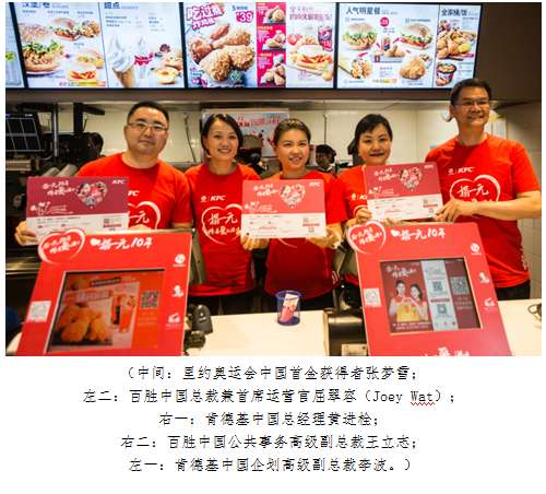 原標(biāo)題:百勝中國總裁攜手奧運(yùn)冠軍在肯德基餐廳助力“捐一元”
