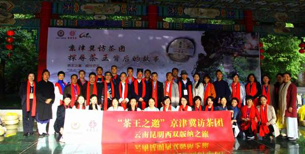 中國茶人發(fā)展聯(lián)盟協(xié)同京津冀著名茶人尹紀(jì)周、趙曙光、肖思學(xué)、王霞、鄧衛(wèi)東、葛英華、鄒雁、王愛、林藝梅、馮宇艷、汪丹丹、潘春紅、穆婷婷、任英麗、唐懷素、李艷霞等共計(jì)36名代表,組成“‘茶王之邀’京津冀訪茶團(tuán)”,在2017年春茶采摘之際,4月17至23日開啟為期一周的云南昆明西雙版納問茶之旅,探訪“普洱熟茶王”——葳盛茶業(yè)旗下“愛隨茶香”背后的故事。云南昆明茶葉行業(yè)協(xié)會會長劉益成攜常務(wù)副會長們親自迎接并致歡迎辭,對這次問茶之旅的意義給予高度評價(jià)。
