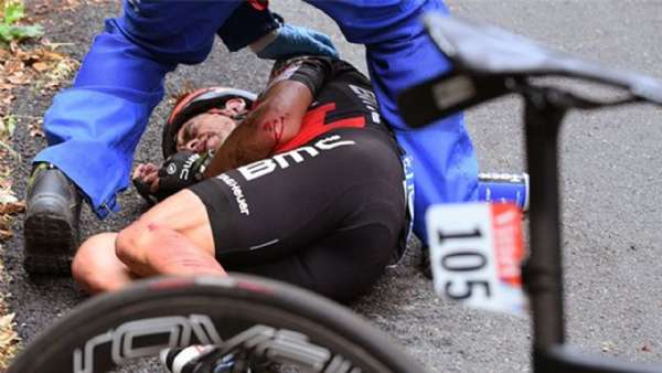 貓墻下坡,賽前大熱BMC里奇·波特時速72.5公里不幸空翻摔車,丹·馬丁被波及。當(dāng)時地上有大量血跡被緊急送往醫(yī)院,最新消息是頸部并未骨折但有腦震蕩,愿大魔王早日康復(fù)重返賽場。