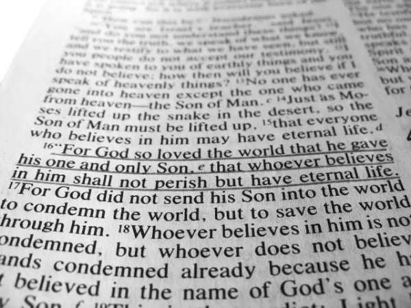 △ 《圣經(jīng)》:開始都已啟動(dòng)。神愛世人,他唯一的兒子,那凡信不滅亡,反得永生。