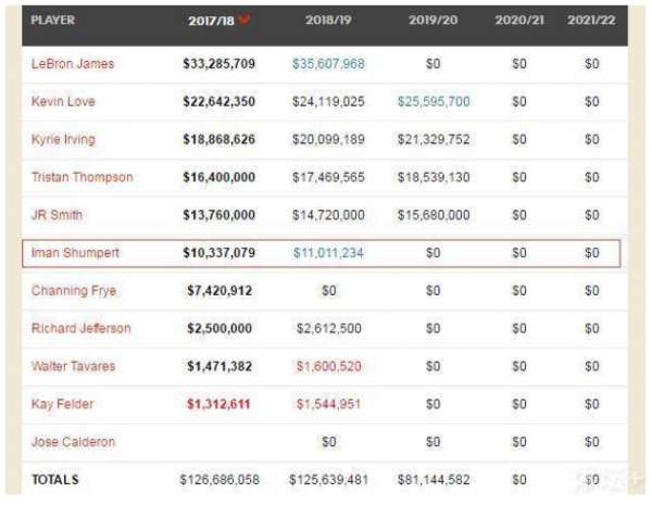 目前自由球員市場(chǎng)上還有不少實(shí)用的球員,比如蒙塔·埃利斯就是個(gè)不錯(cuò)的選擇。但騎士現(xiàn)在補(bǔ)強(qiáng)有一個(gè)前提,騎士老板吉爾伯特希望在控制一定薪金的情況下提升球隊(duì)?wèi)?zhàn)斗力。目前騎士的薪金總額,在沒(méi)算卡爾德隆和杰夫·格林的情況下已經(jīng)達(dá)到1.26億美元,加上這兩位的底薪合同,球隊(duì)薪金達(dá)到1.3億美元,超出了奢侈稅起征點(diǎn)1000萬(wàn)美元。騎士扔掉在季后賽持續(xù)低迷的香珀特變得越發(fā)迫切。
