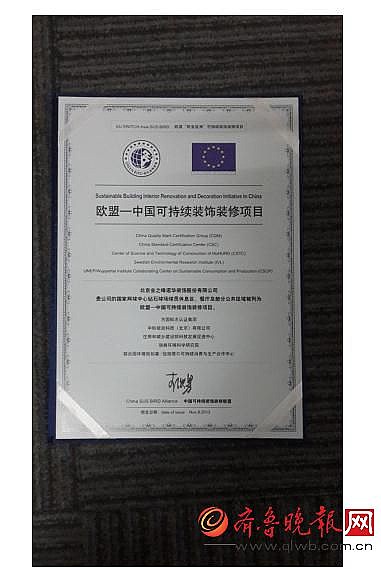 2013年,業(yè)之峰還獲得了“歐盟-中國(guó)可持續(xù)裝飾裝修項(xiàng)目”認(rèn)證,這體現(xiàn)了業(yè)之峰環(huán)保裝修的水準(zhǔn),已得到國(guó)際先進(jìn)水平的認(rèn)可。