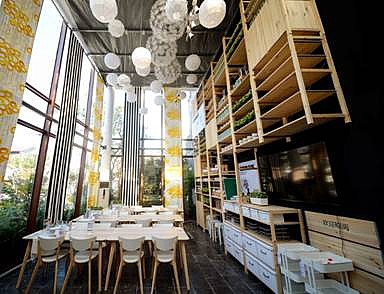 走出展間,沿東北方向步行1分鐘即可抵達商業展間。全透明的玻璃房子將整個區塊劃分為室內及室外兩個部分。在綠植環繞的通透室內,消費者可通過互動品嘗免費的宜家冰激淋,參與宜家公司業務部發起的改造招募,領取體驗中心特制版的宜家藍袋子……更有多種多樣的周末活動可供報名參與,包含親子玩樂、宜家講堂等多個主題。而到了室外,戶外桌椅搭配家居擺設,還原出一個愜意的瑞典夏夜,也為整個宜家體驗中心之旅畫上完美句點。