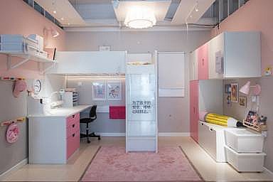 跟著宜家展廊向深處走,一棟白色木質外觀的兩層小樓即為家居展間。這里包含了客廳、廚房、臥室、兒童房、儲藏室等7個靈感展間,從濟南市場的調研出發,還原出當地家庭的生活狀況。在一樓,包含用餐區域的客廳展間透過靈動的產品布局,構建出會客休閑的多功能區塊,滿足三代同堂的家居需求;8平米的廚房將各式廚具食材有序收納,既實用美觀,又方便烹飪;二樓的3個臥室大小不一——帶著陽臺的主臥在宜家的裝點下溫馨而又敞亮;夫婦的臥室里不乏浪漫的氣氛,又為即將而來的小嬰兒做著十足的準備;另一間兒童房布滿了童真和想象力,以一方小天地伴隨著小朋友的快樂成長。另有浴室、儲物間等多個空間供消費者前來一一探索,獲取家居生活靈感。