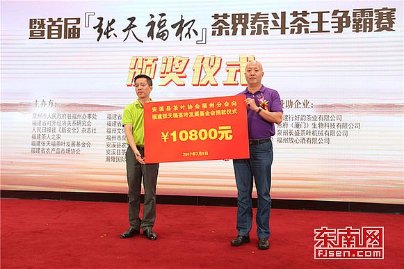 安溪縣茶葉協(xié)會福州分會現(xiàn)場向福建張?zhí)旄2铇I(yè)發(fā)展基金會捐款10800元。