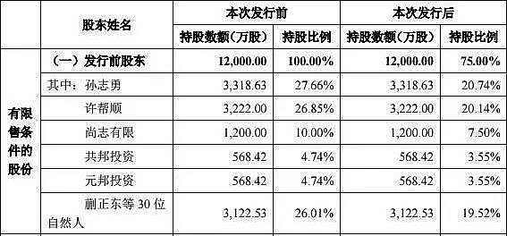 根據(jù)公開資料顯示,志邦股份目前主要股東分別有孫志勇、許幫順、元邦投資、共邦投資;其中元邦投資是孫志勇實際控制人,共邦投資是許幫順實際上控制人,兩人上市后持股比例分別為24.29%、23.69%。
