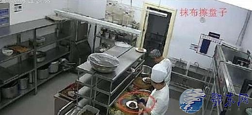 記者注意到,視頻時(shí)間顯示為7月5日12時(shí)許,出現(xiàn)在畫面中的三人身著廚師服,似乎正在準(zhǔn)備涼菜。但畫面顯示,三人都沒有戴口罩、手套,并且畫面中出現(xiàn)了廚師用抹布擦盤子,玩手機(jī)和制作完食物在衣服上擦拭的場景。