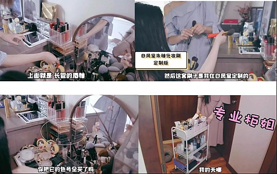 張辛苑的梳妝臺(tái)上,整齊地?cái)[放著各種化妝護(hù)膚品,多到騰不出空地,其中,白鳳堂專門為她定制的化妝刷,她還幾乎買齊了全部色號(hào)的口紅。