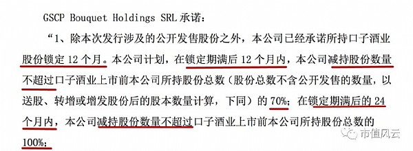 2015年6月,口子窖IPO。作為第一大股東,GSCP Bouquet Holdings SRL曾做出如下承諾,小編已經(jīng)給大家劃好了重點: