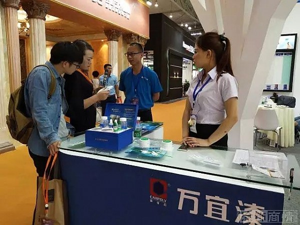 在萬宜展位上,維美的展位設(shè)計(jì),清新的展示風(fēng)格,把競品千萬、唯我相宜的品牌理念表現(xiàn)得淋漓盡致。到展位上來參觀咨詢的老客戶、新客戶絡(luò)繹不絕。此次和琺藍(lán)邸、辟水珠一起參展,向市場(chǎng)傳遞了萬宜聚集三大精銳品牌智造涂料營銷魔法陣的信心和決心。