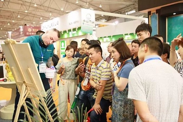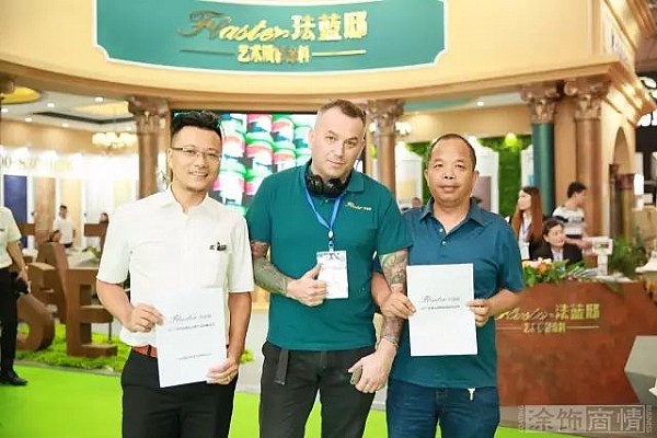 嘉寶莉集團(tuán)展位位于8號(hào)館T1位置,展館大門口,具有先聲奪人的效果,其中最醒目的就是琺藍(lán)邸展位。現(xiàn)場(chǎng)不僅集中展示了瓦帕系列、密諾造型系列、布蘭繽紛系列、盧浮瓷潮系列、銹蝕裝飾系列、珠光絲絨系列等產(chǎn)品的藝術(shù)涂裝效果,各種大氣奔放、個(gè)性十足的藝術(shù)涂料大樣板,讓現(xiàn)場(chǎng)觀眾撫摸體驗(yàn),愛不釋手。琺藍(lán)邸展位前還進(jìn)行了藝術(shù)涂裝的施工展示。嘉寶莉漆波蘭籍員工、國際藝術(shù)大師艾瑞克行云流水的現(xiàn)場(chǎng)施工展示,吸引了眾多帥哥美女駐足停留,有美女還在大師指導(dǎo)下進(jìn)行了現(xiàn)場(chǎng)施工,并爭相和艾瑞克合影留念。
