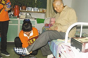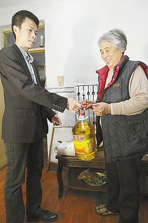 ■北國(guó)超市北國(guó)店的愛(ài)心使者走進(jìn)養(yǎng)老院進(jìn)行慰問(wèn),為老人帶來(lái)了冬暖品等。本報(bào)記者 秋凌 攝