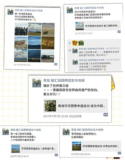 可可西里申遺成功的喜訊,這幾天在融匯版圖地板公司總部、全國經(jīng)銷商微信群及朋友圈刷屏傳播。因?yàn)槿趨R版圖地板與可可西里有著不解之緣,可可西里申遺成功,讓融匯人感到興奮與驕傲。為祖國榮譽(yù)而自豪,為融匯人多年助力支持可可西里建設(shè)而欣喜。