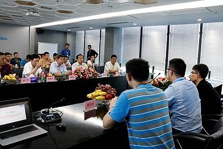 今次呂梁企業家代表團由呂梁市副市長楊巨才、工商聯主席梁來茂、張林生局長、袁軍生副局長、郝三平副局長帶隊,成員由當地營收過億的民營企業家、高層組成,重點學習交流美的在智能制造領域的管理經驗,美的廚電事業部國內營銷公司管理部部長及美的廚電事業部國內營銷公司工程部部長陪同接待。