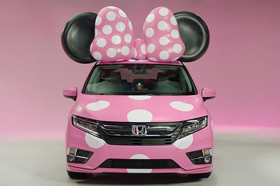 這款全新的“2018款米妮版奧德賽”車身採用一款獨一無二的、粉白相間的波點式涂裝。它的出現,是為了慶祝本田汽車公司與迪士尼ABC電視集團的合作伙伴關系,同時也是為了慶祝“迪士尼開啟了神秘大獎”。因為一位幸運觀眾贏得了一輛奧德賽(但不是這輛)和去迪士尼樂園度假的大獎。這款車還將在迪士尼頻道和“米奇和公路賽車手”節目中亮相。