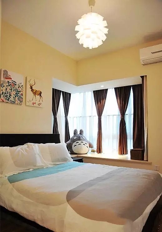 臥室一樣是非常簡約的,靠窗的L型飄窗設計,讓臥室多出一個休閑的好地方,小編覺得最美的,就是愛的人在飄窗處彈著吉他的畫面。
