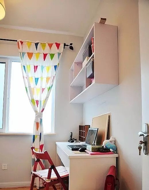 角落里的小書桌,開放式的格子書架,非常簡單,但是足夠實用。
