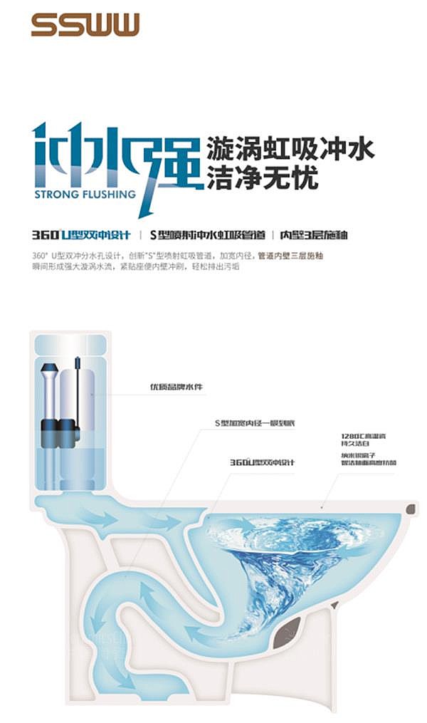 \u00A0 \u00A0 浪鯨衛(wèi)浴提供的馬桶采用噴射虹吸式?jīng)_水,沖水力度更加徹底強(qiáng)勁,管道內(nèi)部施釉,不易掛污且容易清洗。造型小巧簡(jiǎn)潔,在衛(wèi)浴間里不占據(jù)多余空間,便捷實(shí)用。