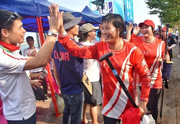 左一為女隊的方金彩選手,她今年已經(jīng)55歲了,還將代表廣東龍舟隊去參加在天津8月底舉行的全運(yùn)會開幕式!