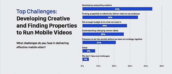 在這份調查中有 96 %的受訪者表示他們正面臨來自移動視頻營銷的挑戰其中 44% 的受訪者認為最大的挑戰是“如何展現引人入勝的創意視頻”。簡言之移動營銷人員明白調整并使用其他平臺的視頻直接至移動端效果并不好。