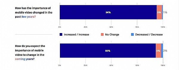但無論面臨怎樣的挑戰營銷人員還是認為移動視頻含有巨大機會。在從事移動營銷和移動用戶獲取的相關受訪者中94%的從業者表示在過去幾年里移動視頻廣告在快速增長93%的受訪者則表示移動視頻廣告的重要性將在未來幾年中保持持續增長勢頭。