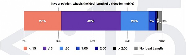 關于移動視頻長度70%的受訪者認為移動視頻廣告的理想長度為15秒或更短。