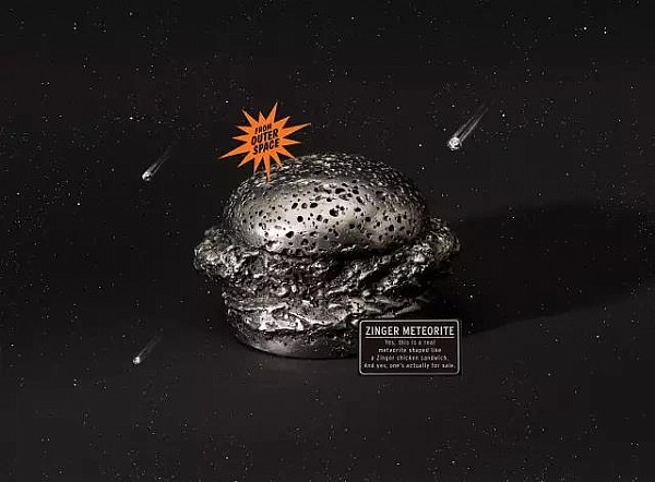 然而這款炸雞堡選擇了一塊具有400年歷史的隕石做原料,還邀請(qǐng)了3名藝術(shù)家把生菜、炸雞肉、面包生動(dòng)的雕刻了出來。